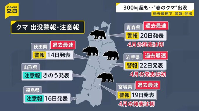 こうした事態を受け、岩手、青森、秋田などでは過去最速で「出没警報」が出されています。