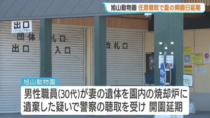 旭山動物園は、30代の男性職員が、妻の遺体を園内の焼却炉に遺棄した疑いで警察の任意聴取を受けているため夏の開園日をあさって5月1日に延期しました。