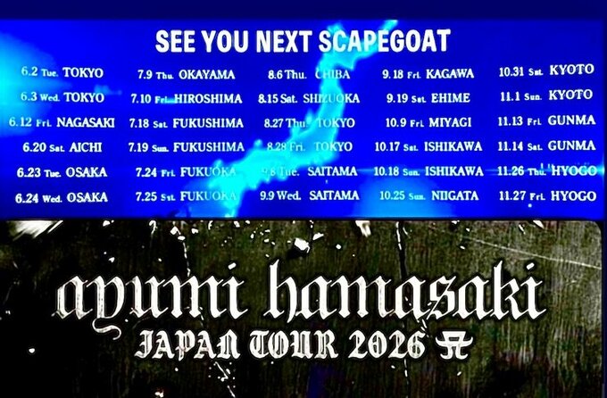 浜崎さんは「さていよいよ6月からは本当のScapegoat ツアーが始まります... See you next Scapegoat 🖤」と締めくくり、6月から11月にかけ、全国30公演を駆け巡る待望のロングツアーの全公演スケジュールを発表しました。