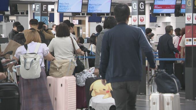 中部空港によりますと、29日から5月6日までの国際線の予約者数は出国・帰国あわせて約10万人で、去年のゴールデンウィークの9割ほどにとどまっています。