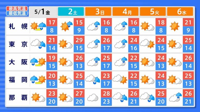 【GWの雨は?】ゴールデンウィーク前半戦は大雨? 5月1日は全国的に荒天に警戒 気象庁の最新の予報は?【5月4日(月・祝)にかけての雨風シミュレーション】 山陰放送 2026年4月29日(水) 12:12 国内 気象庁によりますと、30日にかけて西日本を中心に大気の状態が非常に不安定となり、土砂災害や低い土地の浸水、河川の増水に注意・警戒が必要です。5月1日は低気圧が発達しながら通過するため、全国的に風が強まり、波が高くなる見込みです。 ▼5月4日(月・祝)にかけての雨風シミュレーション ▼全国の週間天気予報を見る