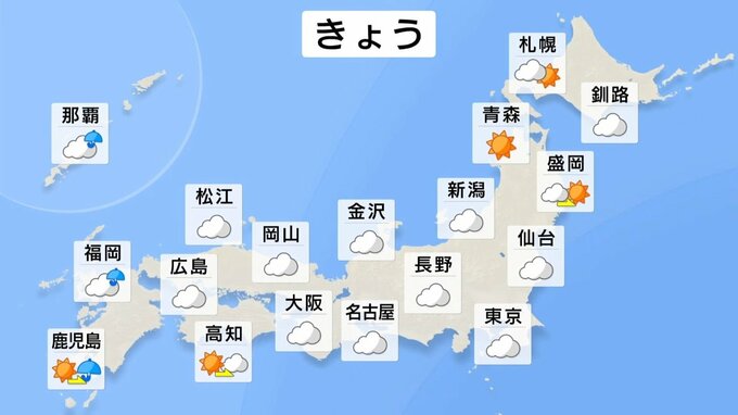 一方、北海道や東北北部は晴れて青空が広がるでしょう。
