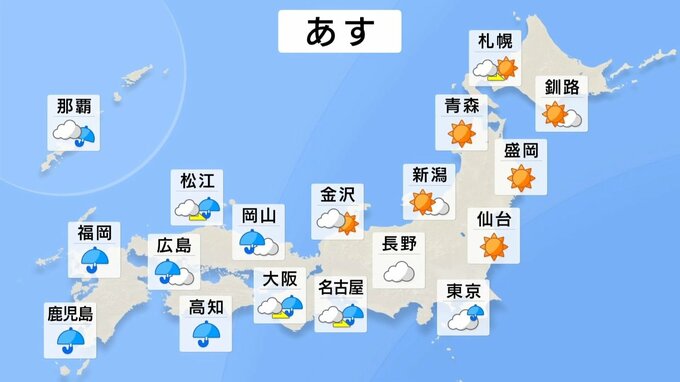 あさっては北日本から西日本の広範囲で雨になり、関東から西の太平洋側では警報級の大雨になるおそれもありそうです。