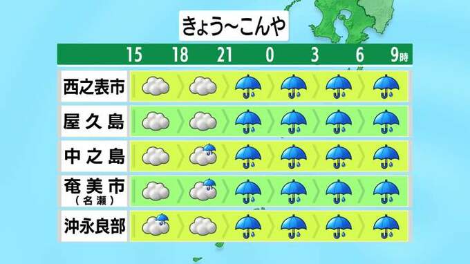 奄美地方では、▼30日の明け方から昼すぎにかけて、局地的に雷を伴った1時間に40ミリの激しい雨が降り、大雨となるおそれがあります。▼30日昼までの24時間に予想される雨量は、多いところで100ミリです。