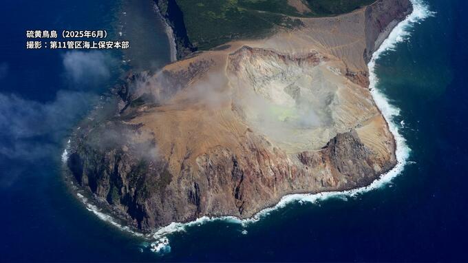 那覇から北に約200キロ、黒い断崖が海面から切り立ち、ときに白い蒸気が青空へと立ち上る、硫黄鳥島。長径2.7キロ、幅1キロ という規模に、火山の火口を2つ抱える。