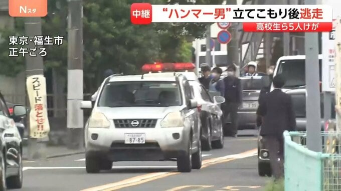 警視庁が正午ごろに男の自宅に突入しましたが、男の姿はなく、男は自宅から逃走したということです。