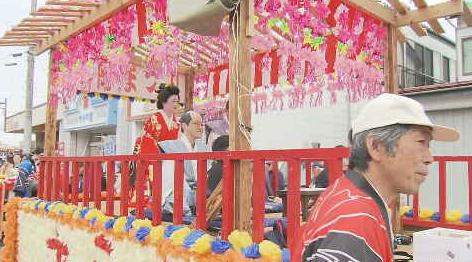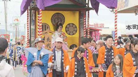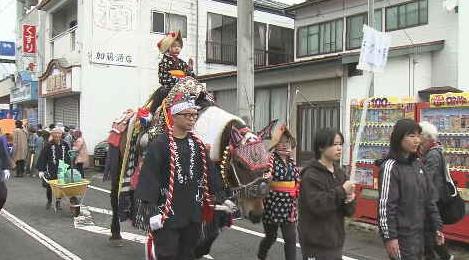 まつりでは、政岡の局を乗せた山車や地元の民俗芸能「鹿踊」などが町の目抜き通りを練り歩きました。