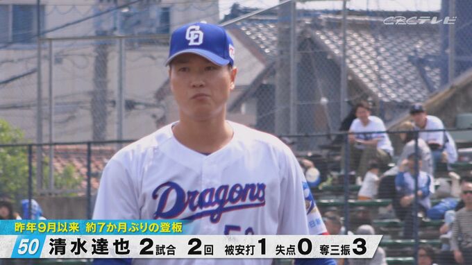 ●#50清水達也投手/2試合、2回、被安打1、失点0、奪三振3
