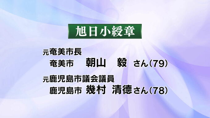 社会のさまざまな分野で顕著な功績があった人に贈られる旭日章のうち、旭日小綬章は元奄美市長の朝山毅さん(79)、元鹿児島市議会議員の幾村清德さん(78)、
