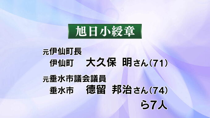 元伊仙町長の大久保明さん(71)、元垂水市議会議員の德留邦治さん(74)ら7人が受章しました。