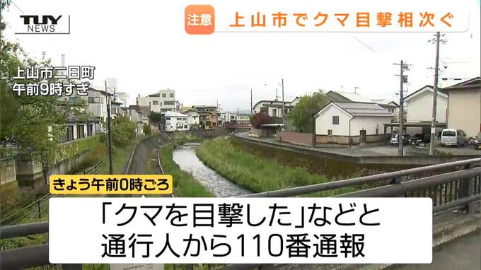 きょう未明、上山市の住宅街でクマが目撃されました。上山市内では、おとといからクマの目撃が相次いでいて市が注意を呼びかけています。
