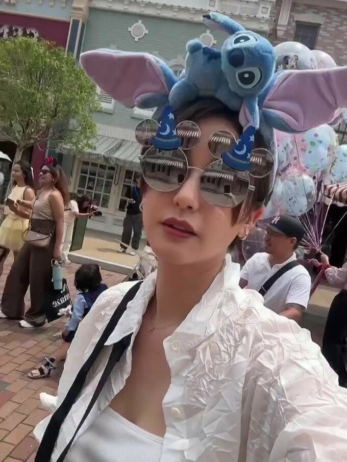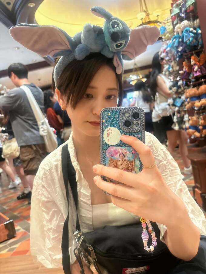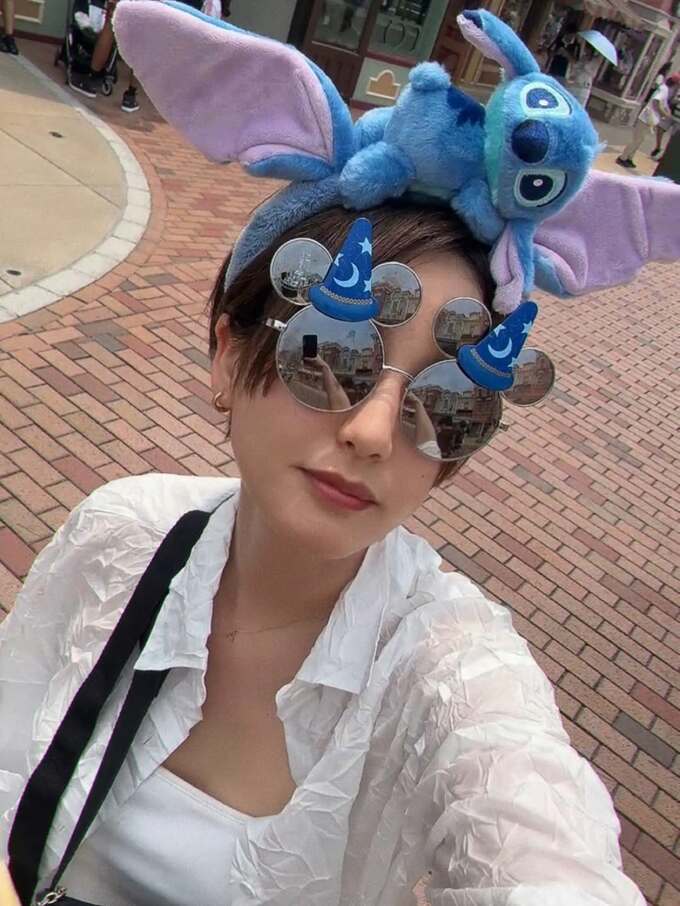 山崎さんはこのスティッチのカチューシャがとても気に入ったようで、様々なシーンで着用した姿を写真に収めています。