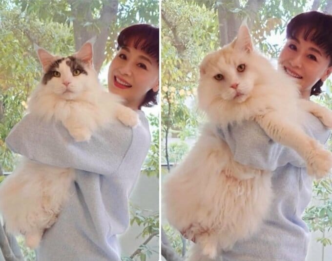俳優の大地真央さんが、愛猫2頭を抱き上げて「めでたく5さい」を自身のインスタグラムに投稿しました。