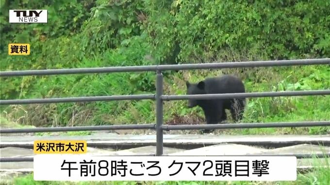 米沢市によりますと午前8時ごろ、米沢市大沢でクマ2頭が目撃されたということです。2頭とも体長は分かっていませんが成獣と幼獣とみられています。