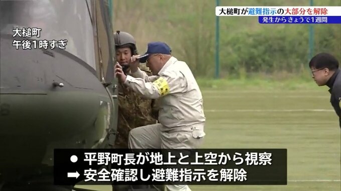 「一部の地区においては、民家に延焼する恐れが見られないことから、避難指示を一部解除します」