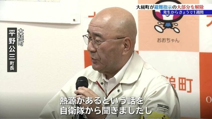 「熱源があるという話を自衛隊から聞きましたし、消防長からも見て完全ではない、消防から鎮圧はまだですので、町民の方々には気を付けていただきたい」