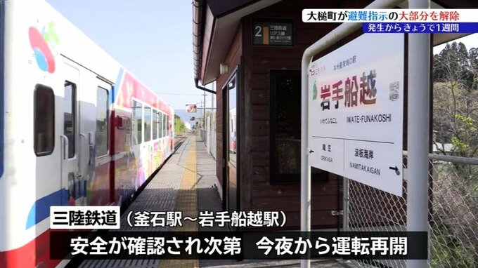 また、釜石駅から岩手船越駅の間で運転を見合わせていた三陸鉄道は現在、試運転を行っていて、安全が確認され次第、今夜から全線で運転を再開します。