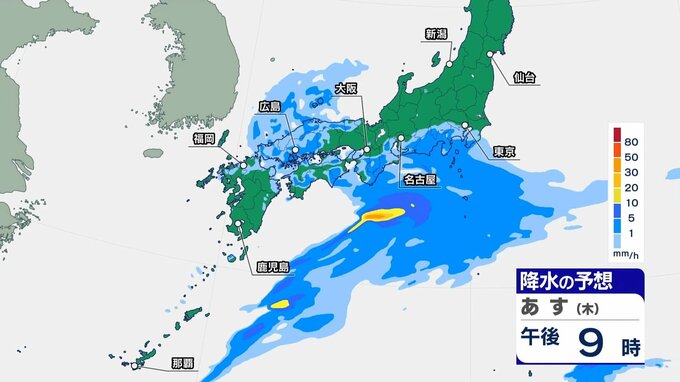 東海も朝から一部で雨雲がかかり、日中は雨の範囲が広がるでしょう。関東も神奈川など、沿岸部ほど雨雲がかかりやすく、日中から一部で雨の降る可能性があります。夜は雨の範囲が広がり、夜遅くなるほど雨が降りやすくなるため、お帰りが遅くなる方は雨具があると安心です。