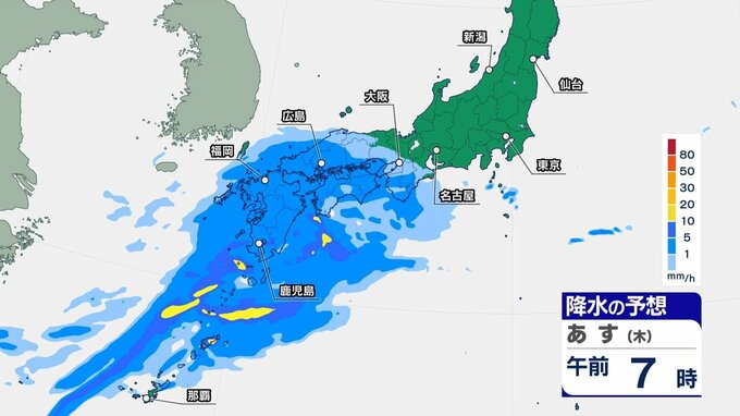 夜にかけても雨が降り、九州南部や四国など太平洋側では、雨脚の強まる所がある見込みです。また太平洋側の沿岸部では風が強まる所もありそうです。