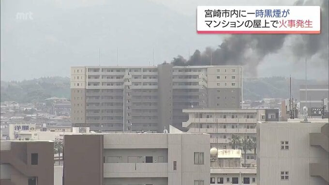 宮崎市で正午ごろマンションの屋上から火事が発生し一時騒然としました。