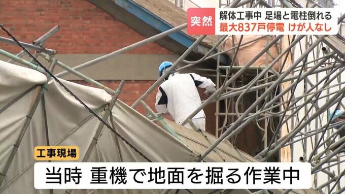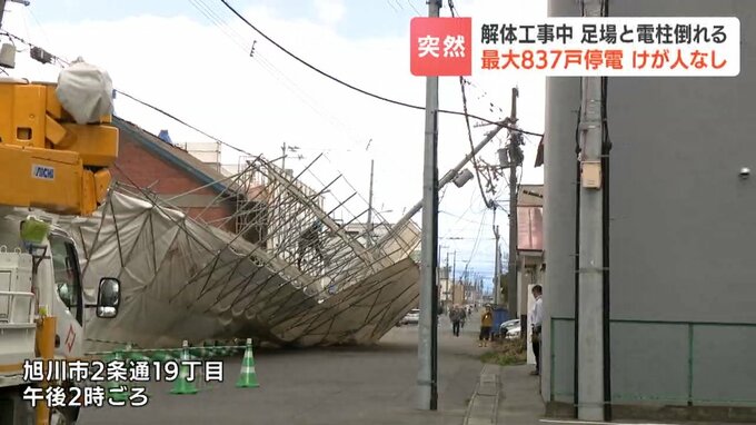29日午後、旭川の建物の解体工事現場で足場や電柱が倒れました。この影響で付近の最大837戸が停電しました。