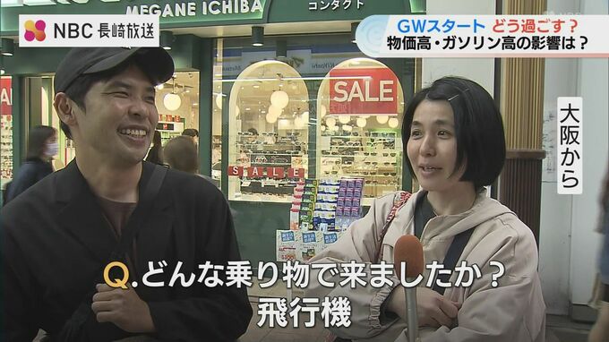 大阪から:「飛行機。1日ずらすと安くなったりしますよね。(今日だったら)高かった。そんなに、平日の往復でうまく。」