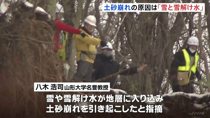 2人が犠牲になった山形県鶴岡市の土砂崩れについて、きのう調査に入った専門家は、先月降った雪とその雪解け水が原因だと指摘しました。これは先月31日、山形県鶴岡市で住宅の裏山が崩れ、男女2人が犠牲になったも…