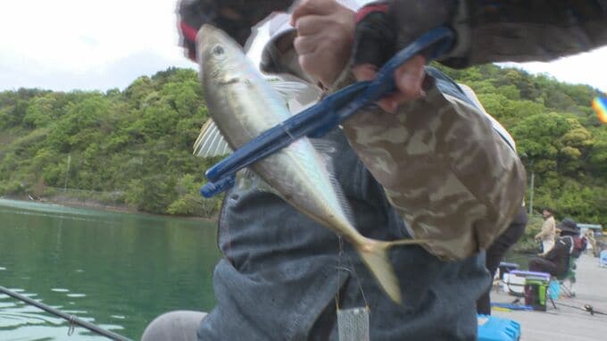 多い人で20センチ以上のアジを5匹、釣っていました。
