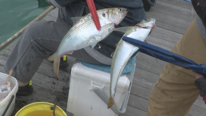 桟橋から家族連れなどが魚釣りを楽しんでいました。