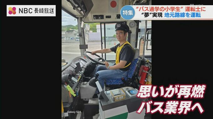 虎太郎さんは、高校卒業後に地元の運送会社に就職しましたが、「バスの運転士になりたい」という思いが再燃し、今年1月、長崎バスに入社。4月に配属されたのは、自分がかつて客として乗っていた地元の路線の営業所でした。