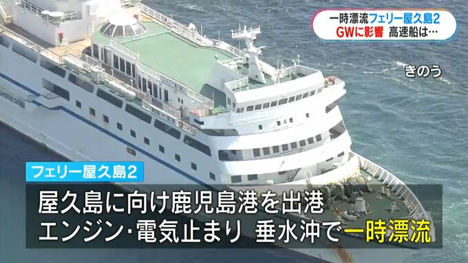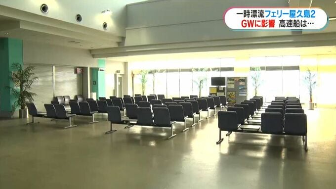 28日、鹿児島湾で一時、漂流したフェリー屋久島2は一夜明けた29日も欠航が続いていて、ゴールデンウィークの利用者に影響が出ています。