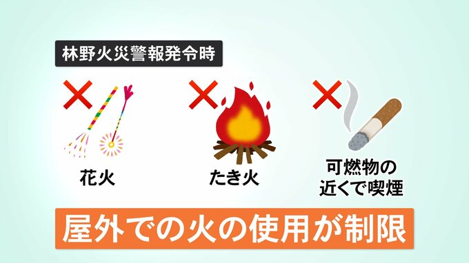 警報が発令された際には、花火や焚火、喫煙などの屋外での火の使用が法律で制限されます。