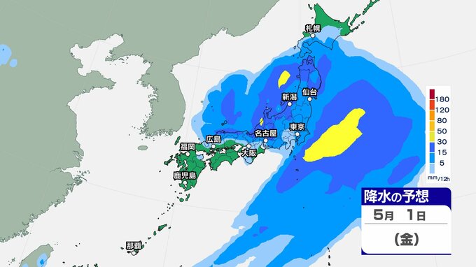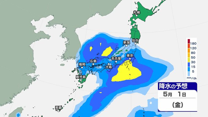 【大雨情報】5月1日は東京首都圏で荒天か GWの気になる天気は...4月30日(木)~5月5日(火)まで全国3時間ごとの雨風シミュレーション【気象庁 30日現在】 RSK山陽放送 2026年4月30日(木) 08:07 国内 5月10日までの長期間予想 【画像】4月30日(木)~5月5日(火)まで3時間ごとの雨風シミュレーション 【画像】4月30日(木)~5月5日(火)まで3時間ごとの雨風シミュレーション
