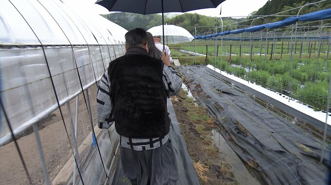 花の収穫は6月ごろから始まるため、きょう(30日)は、リンドウの育つ「ほ場」や、生地として使う予定の和紙の原料などを見学。
