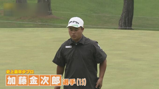 また、史上最年少プロ、15歳の高校1年生 加藤金次郎は13番。バンカーからの第2打。