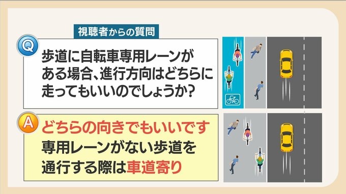 「自転車は車道では原則、左側通行ですが、歩道に自転車専用レーンがある場合、進行方向はどちらに走ってもいいのでしょうか?」