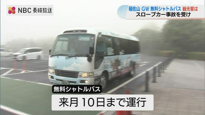 稲佐山で無料バス運行中 GW期間中は1時間2往復 スロープカーに「乗ってみたかったから残念」の声も 長崎放送 2026年4月30日(木) 19:49 国内 運転再開のめど立たず シャトルバス運行は5月10日まで 無料シャトルバスは来月10日までの運行ですが、スロープカーの運転再開のめどはいまのところたっていないということです。