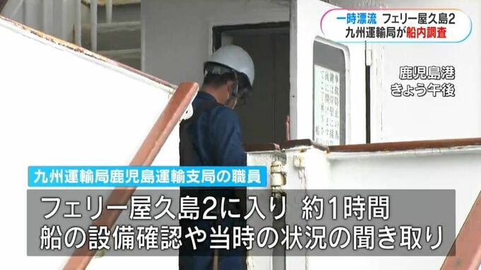 このトラブルを受けて、きょう30日午後、九州運輸局・鹿児島運輸支局の職員が鹿児島港に停泊するフェリー屋久島2に入り、およそ1時間、船の設備の確認や当時の状況の聞き取りをしました。