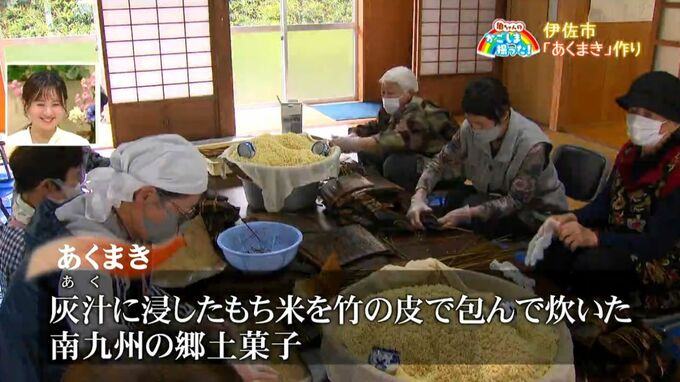 あくまきは、灰汁に浸したもち米を竹の皮で包んで炊いた、鹿児島など南九州の郷土菓子です。端午の節句を前に子どもの健やかな成長を願って作られています。