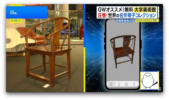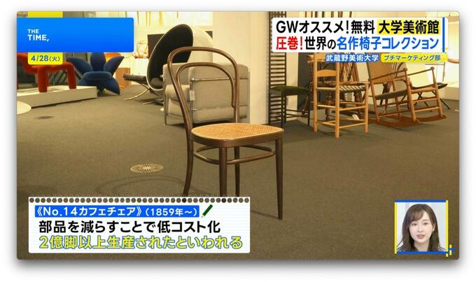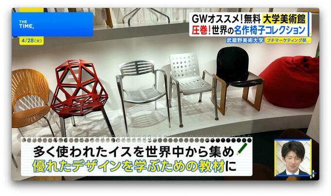 「並んでいるのは“大量生産されたイス”。多く生産されるということは、それだけ沢山の人に愛される、そこには必ずその場にあったデザインがある。それを学生に学んでもらうための教材」