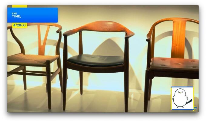 ≪ザ・チェア≫(1949年~)は腰に当たる部分を大きく開けたデザインで、ケネディ大統領が「腰痛でも座りやすい」と愛した椅子とのこと。