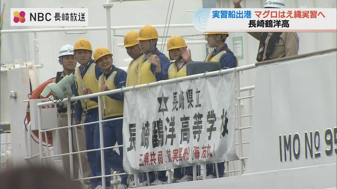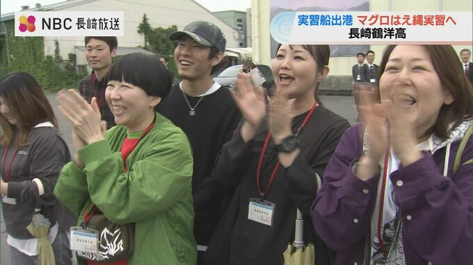 岸壁では教職員や保護者らが実習船の出港を見守りました。