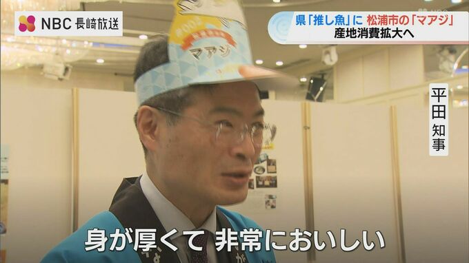 松浦市 友田吉泰市長:「今回、推し魚に認定いただいたことで長崎県と一緒になって様々な取り組みができると思っています、これまで松浦市だけでやってきたよりも大きく影響力もあると思っていますので、この機会をしっかり活かしてより多くの方々に松浦のマアジを知っていただきたい」