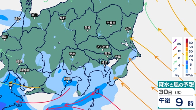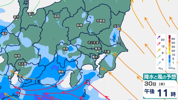 関東は未明から雨となり、雨のピークは1日午前から昼ごろにかけてになりそうです。午後も一部で雨が残る予想です。
