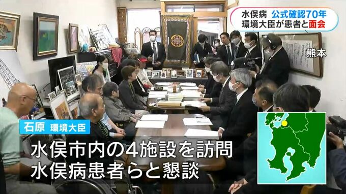 石原環境大臣は30日、水俣市内の4つの施設を訪れ、水俣病患者らと懇談しました。