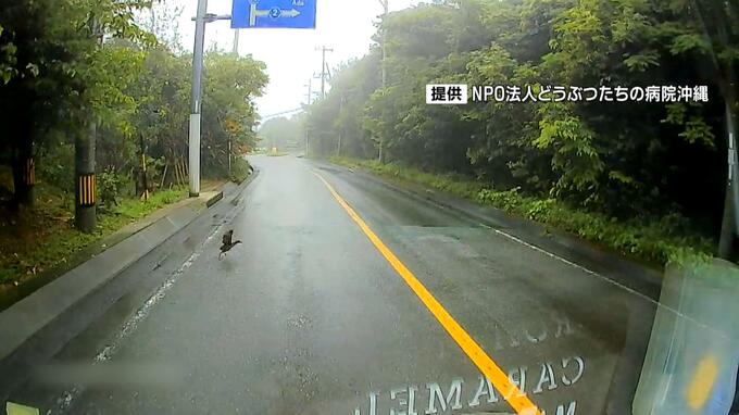 国頭村の道路を走る車のドライブレコーダーが捉えた映像。突然、左側の茂みから飛び出してきたのは、ヤンバルクイナです。ゴールデンウィーク(GW)のこの時期に繁殖期をむかえ活発に動き回るため、普段は活動が低…