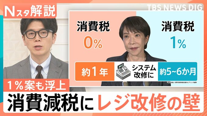 自民党が衆議院選挙の公約に掲げた「食料品の消費税ゼロ」ですが、ここに来て税率を「1%」とする案も浮上しています。0%と1%の間にはレジの壁があるといいます。井上貴博キャスター:先の衆院選で自民党が公約に掲…