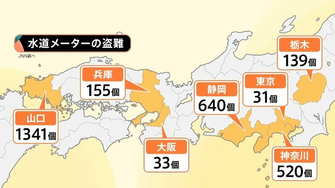 確認されている被害だけでも、兵庫県姫路市の公営住宅で155個、神奈川県の集合住宅で520個、静岡県の集合住宅などで640個など、全国的に水道メーターの盗難が相次いでいるんです。