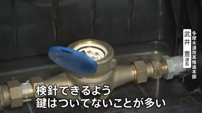 「(東京都では)基本、2か月に1回検診をするので、住んでいる方にお立ち会いいただかなくても検針できるよう、鍵はついてないことが多い。使用中のご家庭で水道メーターがなくなると、水が出なくなり、生活が非常に困難になってしまう」