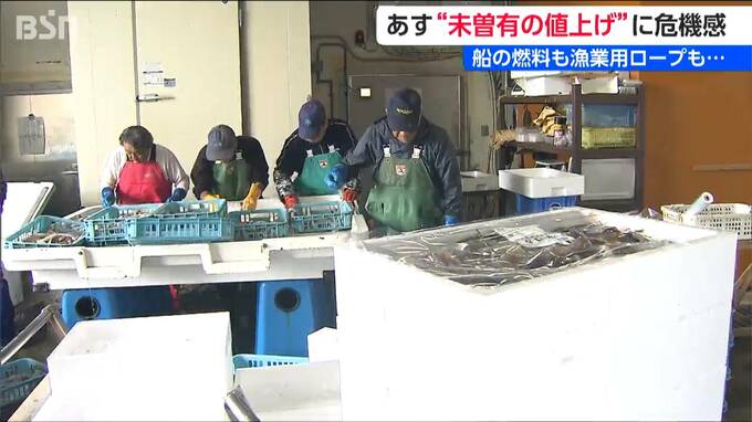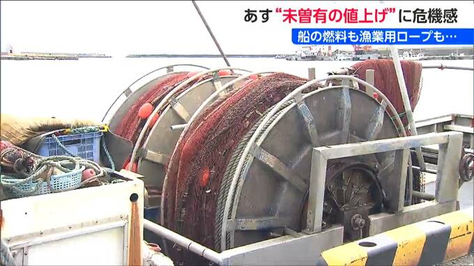 船の燃料となる軽油はもちろんのこと、漁の網につける1200m長のロープは5月1日から20%値上がっておよそ500万円になるほか、水揚げされた魚を入れる発泡スチロールの箱も値上となる予定だということです。